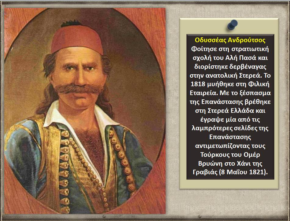 5. Διαβάστε τις ακόλουθες πληροφορίες για τους οπλαρχηγούς και αγωνιστές της Επανάστασης: Οδυσσέα Ανδρούτσο και Αθανάσιο Διάκο που πρωταγωνιστούν σε αυτό το κεφάλαιο.