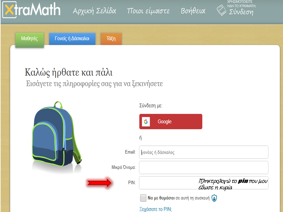 - Κάνω κλικ πάνω στο λινκ https://el.xtramath.org/#/home/index (XTRAMATH ) ή ψάχνω μέσω του GOOGLE τη σελίδα xtramat.org.