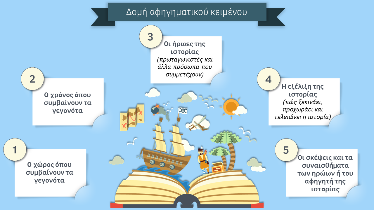 3. Στο τετράδιο παραγωγής γραπτού λόγου φτιάξτε τη δική σας ιστορία για την ερώτηση 4 στη σελίδα 282. Θα σας βοηθήσει το επόμενο σχεδιάγραμμα, με τη δομή που έχει η έκθεσή μας όταν διηγούμαστε μία ιστορία!