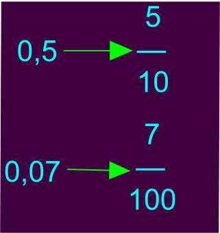 - Στη θέση του παρονομαστή γράφουμε τον αριθμό 1, με τόσα μηδενικά όσα και τα δεκαδικά ψηφία του αριθμού.