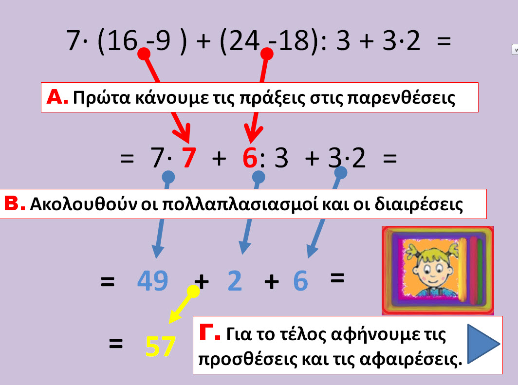 1. Πρώτα κάνουμε τις πράξεις στις παρενθέσεις.